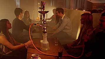 Camera op filming interviews and general shots inside a bar for a promotional video.